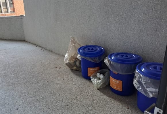 公共空間的部分,有垃圾桶不足、垃圾過多的問題。新大樓的垃圾桶主要設置在廁所前的流理臺旁,但因設置數量少、開口設計小,而使垃圾暴滿。目前可以看到新增的大型藍色垃圾桶,暫時緩解此狀況。